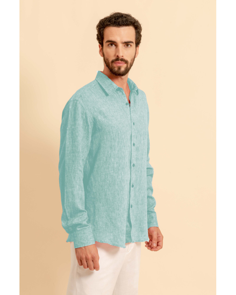 CAMISA MANGA LARGA CUELLO TIPO FRANCES COLOR TURQUESA