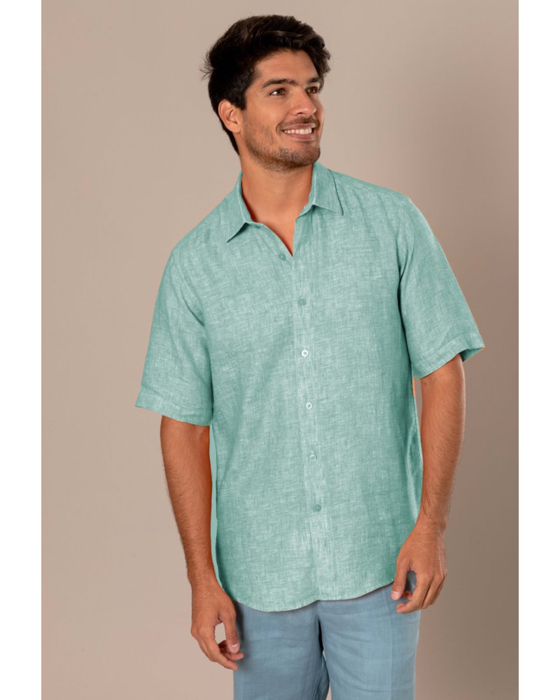 CAMISA MANGA CORTA CON CUELLO TIPO FRANCES COLOR VERDE