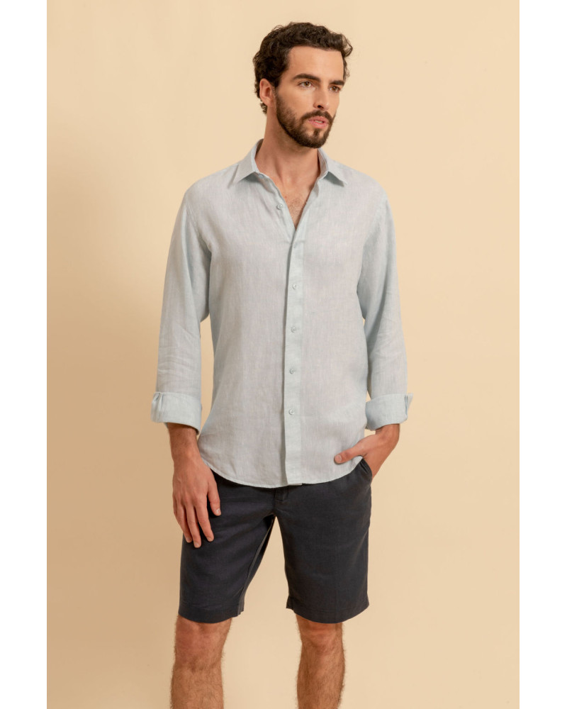 CAMISA MANGA LARGA CUELLO TIPO FRANCES COLOR AZUL CIELO